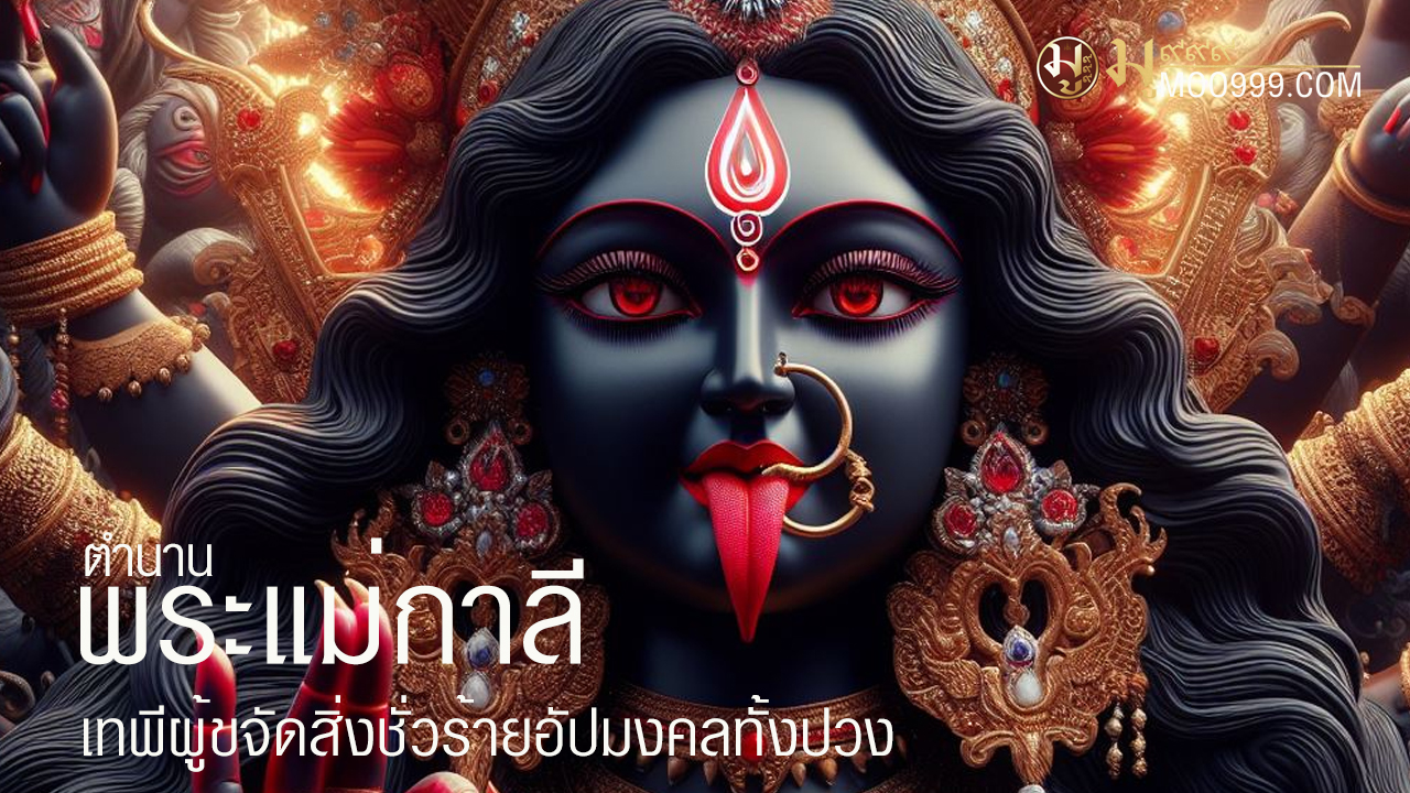 พระแม่กาลี หรือเจ้าแม่กาลี เป็นปางอวตารอีกภาคหนึ่งของพระแม่อุมาเทวี พระนางมีวรกายสีดำ มีพระพักตร์ที่ดุร้ายน่าสะพรึงกลัว ดูดุดัน เกรี้ยวกราด ริมฝีปากมีหยดเลือดเป็นทางยาว แลบลิ้นสีแดงยาว มีสิบพระกร ถือศาสตราวุธทรงอนุภาพในทุกพระกร มีหัวกะโหลกร้อยประดับเป็นสร้อยสังวาลย์ ทรงอวตารมาเพื่อกำหราบเหล่าอสูร ปีศาจ และมนุษย์ที่ชั่วร้ายทั้งหลายทั้งปวง และด้วยที่พระองค์เป็นถึงมหาเทวี จึงทรงมีอิทธิฤทธิ์อย่างมหาศาลในการพิชิตสิ่งชั่วร้าย จนกลายเป็นที่เกรงกลัวของเหล่าอสูรเป็นอันมาก ที่ใดมีมหาเทวีปรากฏขึ้น ที่นั่นมักจะนองไปด้วยเลือดของเหล่าอสูร
