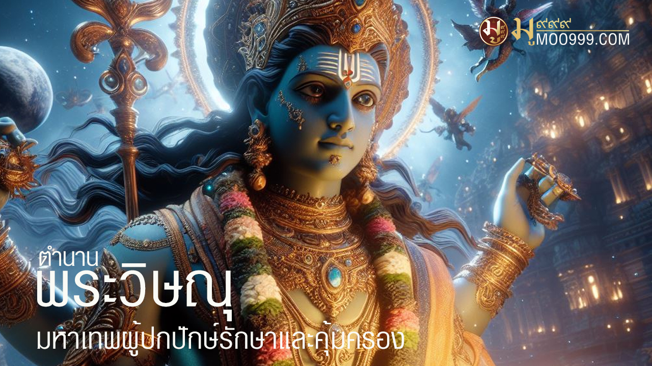 พระวิษณุ (หรือที่คนไทยเรียกว่า พระนารายณ์) ตามความเชื่อของศาสนาพราหมณ์ฮินดู ถือว่าพระองค์เป็นหนึ่งในสามของมหาเทพสูงสุดในจักรวาล เป็นมหาเทพผู้ปกปักรักษาสรรพสิ่ง (สามมหาเทพสูงสุดของจักรวาล คือ พระพรหม(พระผู้สร้าง) พระวิษณุ(พระผู้ปกป้องรักษา) พระศิวะ(พระผู้ทำลาย) และเมื่อสามพระองค์อวตารมาเป็นร่างเดียวกัน ก็จะเรียกว่า “พระตรีมูรติ” มีสามเศียรของทั้งสามพระองค์ในร่างเดียวกัน)